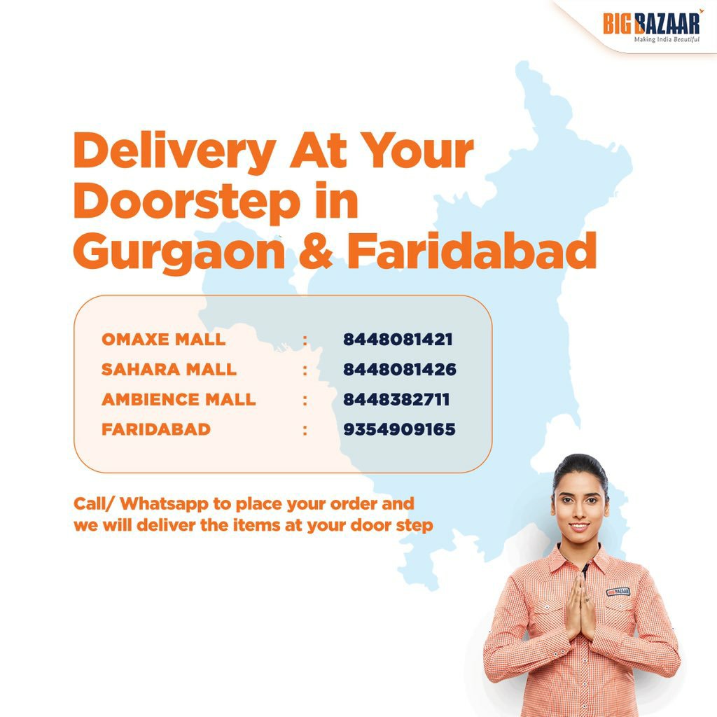 - Gurgaon and Faridabad Bigbazaar Number for Delivery at your Doorstep