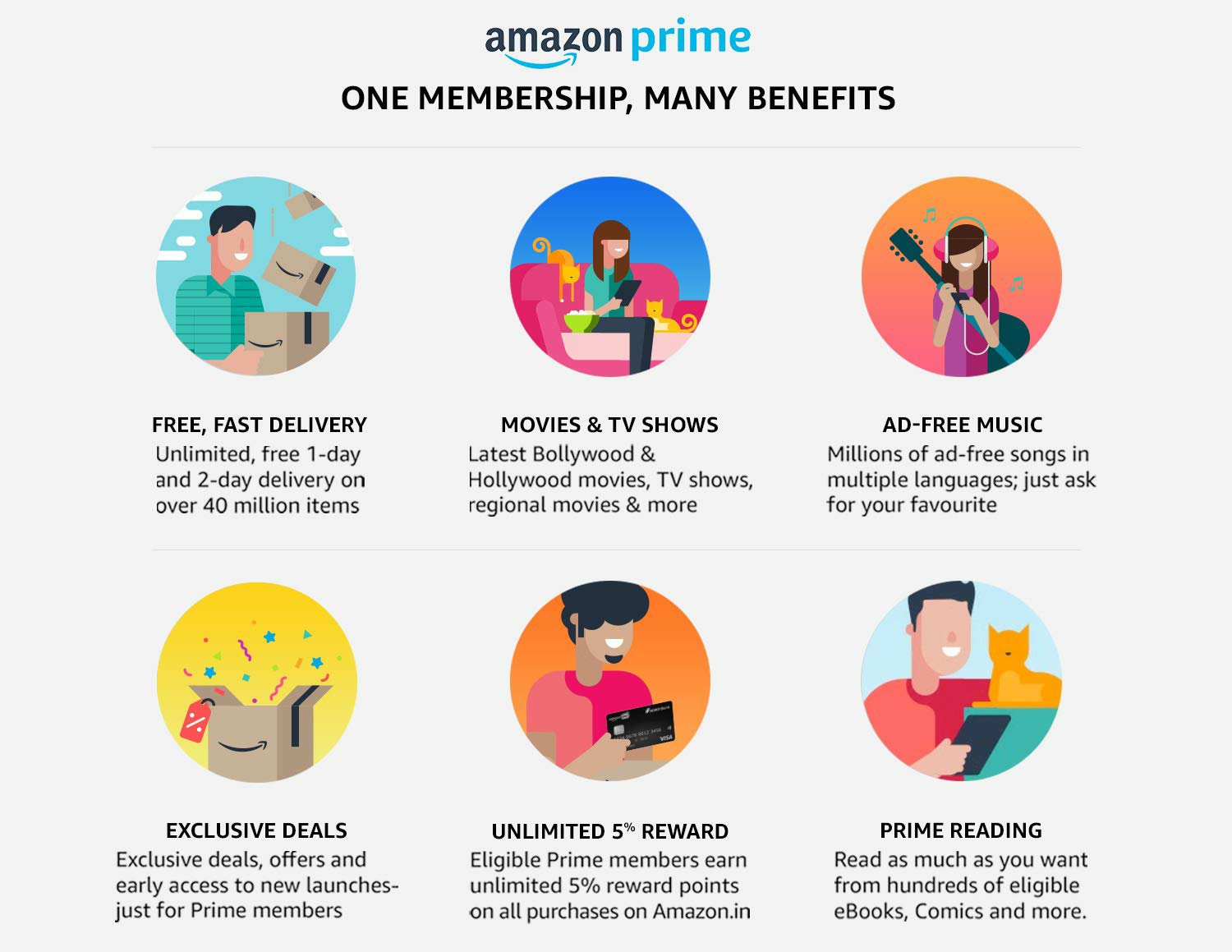 Amazon prime Membership benifits – Amazon Prime is a single membership with many benefits for Amazon customers where members can get the best of Shopping and Entertainment with FREE fast shipping, unlimited streaming of movies, TV shows and music, exclusive shopping deals and selection, ad-free music and more.