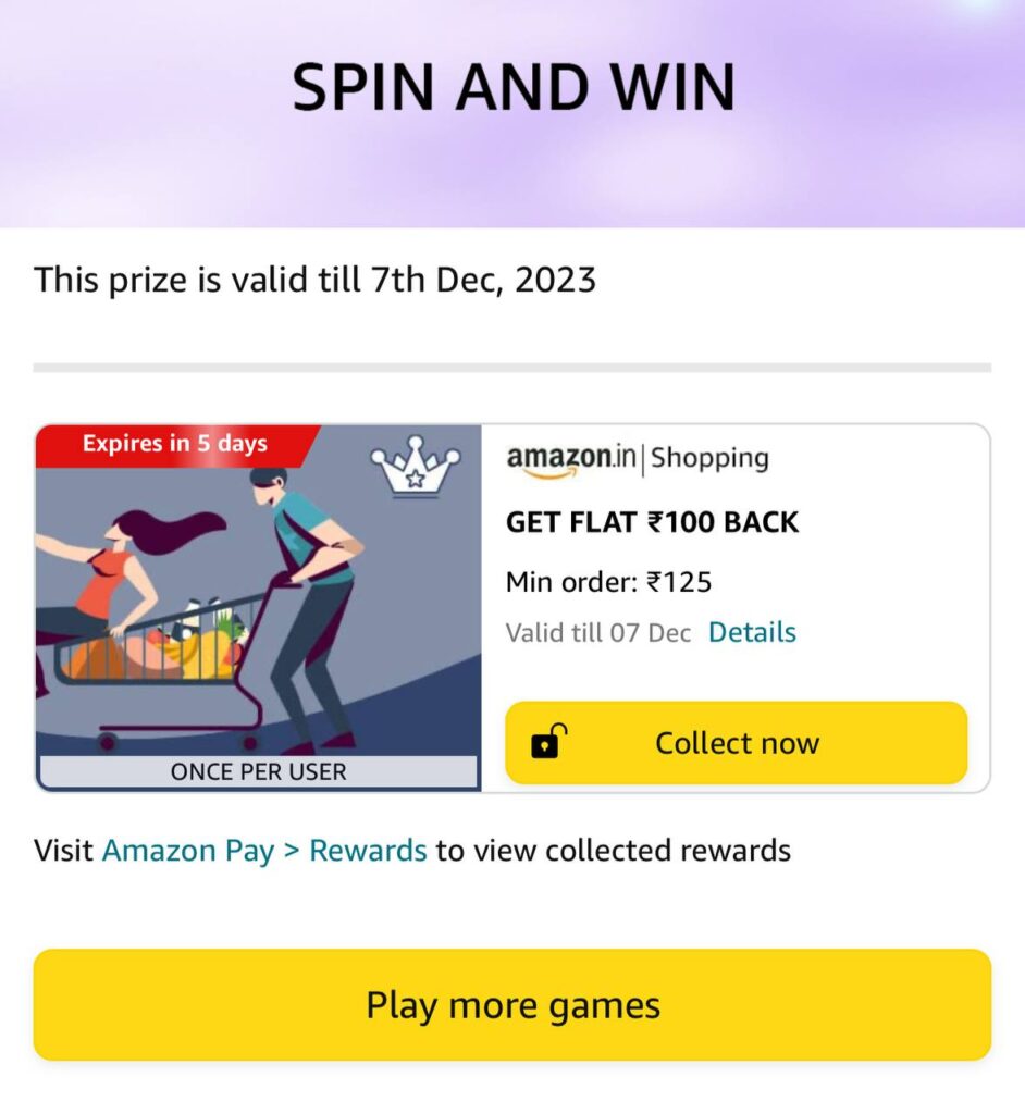 How to Get ₹100 Cashback on ₹125 Shopping from Amazon Spin & Win
