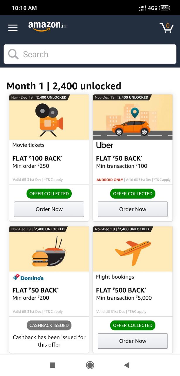 hello friends welcome to trickzon blog i hope you doing well. I am back a with new offer in which you will get reward worth 2400 rupees just sending 1 rupees. its great offer if you using amazon app for movies , shopping , pizza order , flight or more.