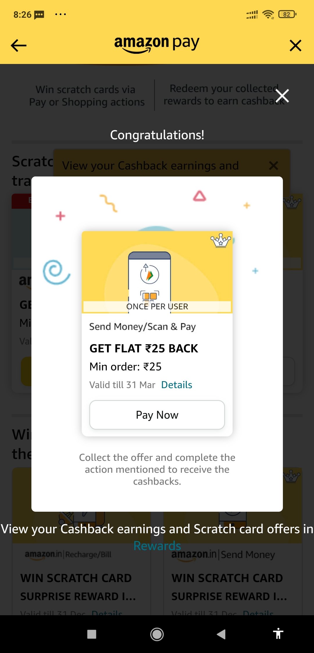 Collect Cashback offer Get flat 25₹ on sending money of 25₹