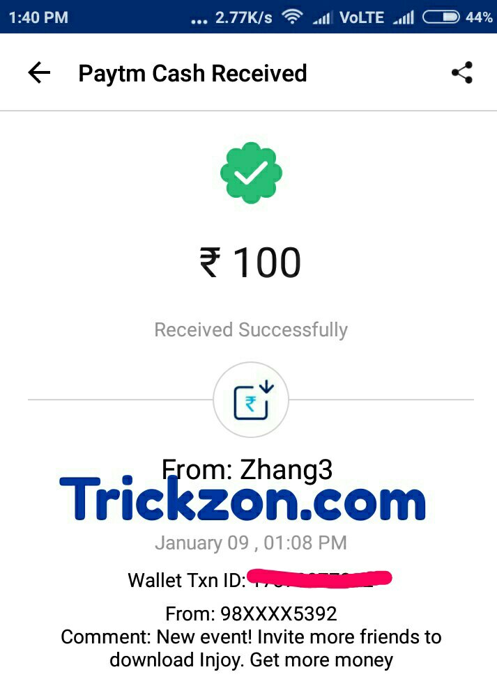 4. Injoy App :- Injoy app refer and earn 100 rupee paytmcash. Earn 30 rupee on sign up + 5 rupee per Referral + 1 click (on your link get ) =1