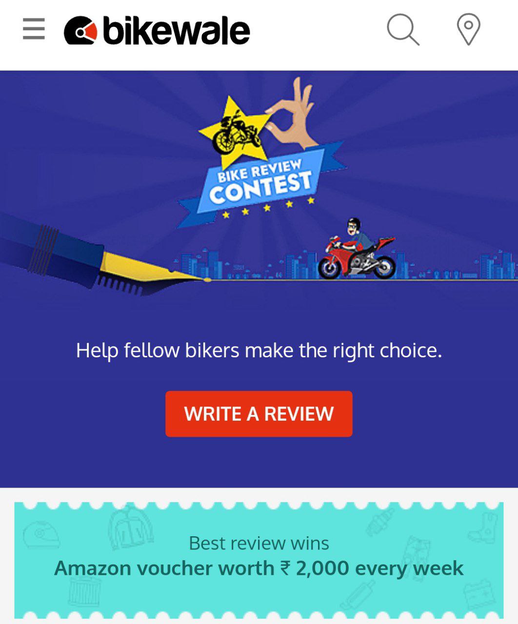 BikeWale is one of India’s most trusted platforms for bike and scooter reviews. To encourage real user feedback, BikeWale is rewarding reviewers with Amazon Vouchers worth ₹2000.