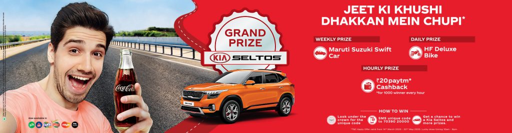It is hereby clarified that, if the Winner is interested in buying any accessory for the car/bike, as applicable, the same shall not be considered as part of the Prize and the Winner shall be solely liable to pay for the same. CCIPL/Apps Discover shall neither pay nor give any compensation to the Winner for any accessories or any other charges in relation to the Prize. All taxes on the Prize as per the applicable law, shall be borne by CCIPL. It is clarified that Hourly Lucky Draw Prize, Daily Lucky Draw Prize, Weekly Lucky Draw Prize and Mega Lucky Draw Prize shall collectively be known as Prizes/Prize. Individuals interested in participating in the Promotion are invited to: Purchase any returnable glass bottle of Coca-Cola, Fanta, Limca, Maaza, Kinley Soda , Sprite, Thums Up, Thums Up Charged(“Promotion Products”) and send via SMS, the 8 (eight) digit Alphanumeric unique code (“Unique Code”) printed under the crown of Promotion Products to (+91) 7039020000. The Unique Code may be found under the crown of 200 ml,300 ml glass bottles of Promotion Products. All Unique Codes shall be prefixed by brand and region code. Stock without the Promotion offer will also be available across India. Further, certain stock containing the Promotion offer may be available before the Start Date of the Promotion and may continue to be available even after the Promotion Period. However, consumers understand and agree that they will not be permitted to participate in the Promotion before the Start Date of the Promotion Period and after the expiration of the Promotion Period and further, agree not to raise any claim or complaint against CCIPL or its agents in this respect. The Promotion is advertised and promoted, inter alia, through media including radio, digital media, point of sale materials, outdoor publicity through banners, posters, billboards, public announcements, website and other available media. The Promotion is subject to all applicable central, state and local laws and regulations. Individuals will also have access to a toll-free helpline number “1800-208-2653” during the Promotion Period which they can call on to clarify their doubts and queries with respect to the Promotion. |