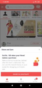 - Now share with whatsapp and send your friends when they order free product you will get 100 rupees on your wallet.