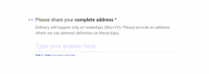 - Enter your Full Address ,Delivery will happen only on weekdays (Mon-Fri). Please provide an address where we can attempt deliveries on these days.