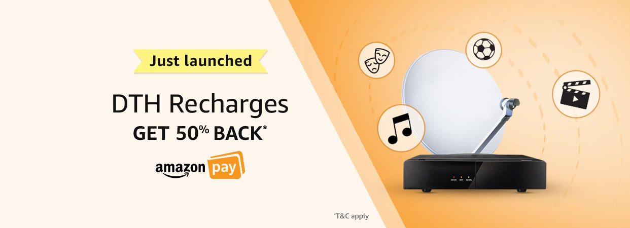 10.This Offer is available only on the recharge for DTH connections issued in India, and is not available in relation to postpaid mobile bill payments or prepaid mobile recharges or payments of utility bills. For the avoidance of doubt, it is clarified that this Offer is available only on DTH Recharges issued by select DTH Providers that are available and listed on Amazon.in.