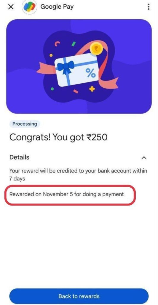 6. Scratch the card Boom you will recieve a ₹250 cashback in your back account instant credit.