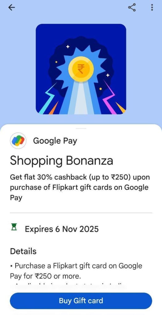 Google Pay Gift Card Offer – Get 30% Cashback up to ₹250