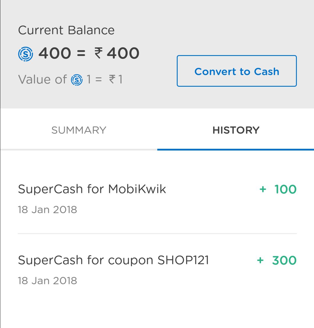 ₹50 in wallet + 400 supercash =450