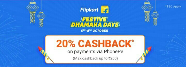 PhonePe App 20% Cashback on Payment vs Phonepe on Flipkart – phonepe app giving 20% cashback on Flipkart when you payment with phonepe app on check out. Maximum Cashback is 200 rupee