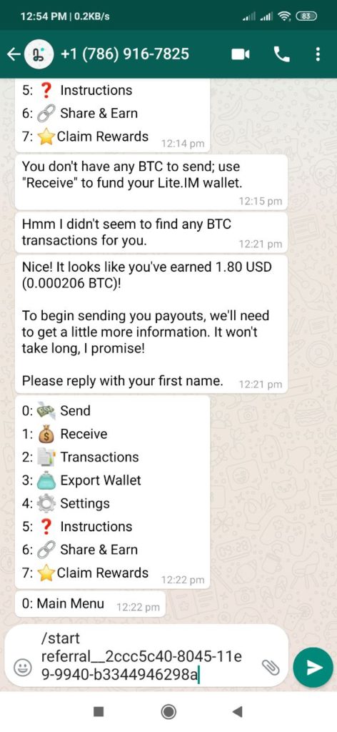 ( with proof ) Lite.im on whatsapp refer and earn $0.10 per refer bitcoin