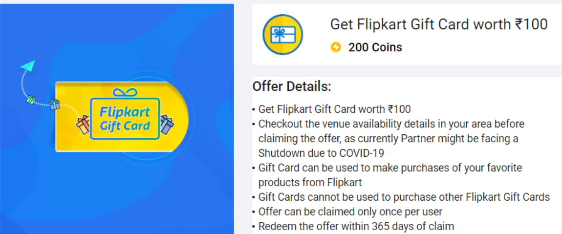 Redeem 200 Flipkart Supercoins And Get Flipkart Gift Card Worth 100 Rupees Free