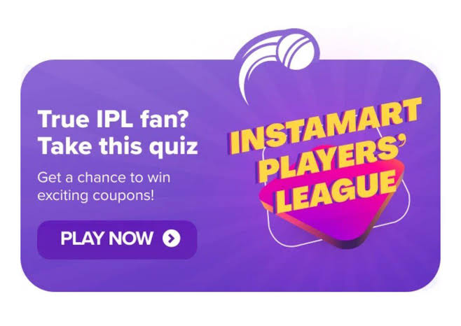 Swiggy Instamart Players League, swiggy instamart ipl quiz, swiggy instamart quiz , Swiggy Instamart ipl quiz answer, win swiggy coupon code, win daily swiggy instamart coupon, Swiggy ipl quiz answer – Hello friends Welcome to Trickzon blog I hope You Doing Well I Am back with new other exciting offer in which You can Win Free Swiggy Instamart Coupon code and buy free grocery. Swiggy Running a Instamart Player League Quiz , You Have to Answers 5 Questions of Ipl , we are daily updated questions answers in this Post you can check below.