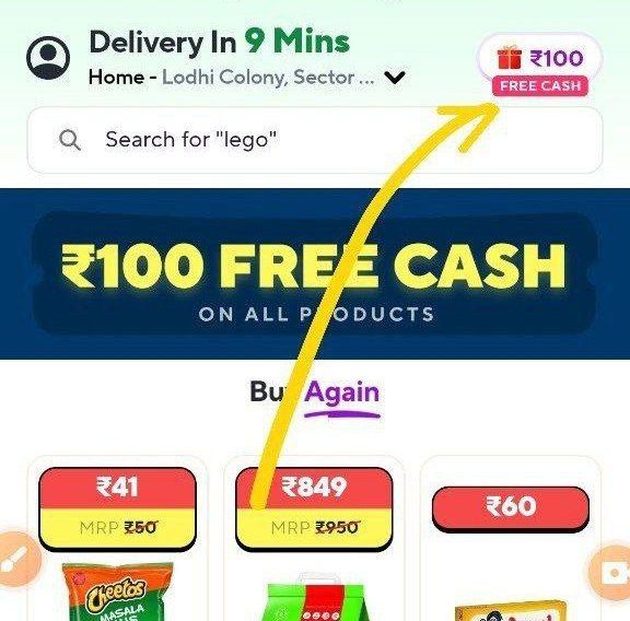 - Now you can see 100 or 75₹ Free cash in zepto wallet.